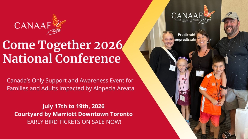 We are pleased to share the “Attack from Within” alopecia patient video with you. This video follows Christal, Jen, Julia, and Sasha, as they share how alopecia affects their identity, their relationships, and their overall quality of life. This video was developed by Eli Lilly Canada Inc. with participation and endorsement from CANAAF. The Canadian Alopecia Areata Foundation community is truly grateful for Lily Canada’s support and partnership in spreading awareness of alopecia areata.