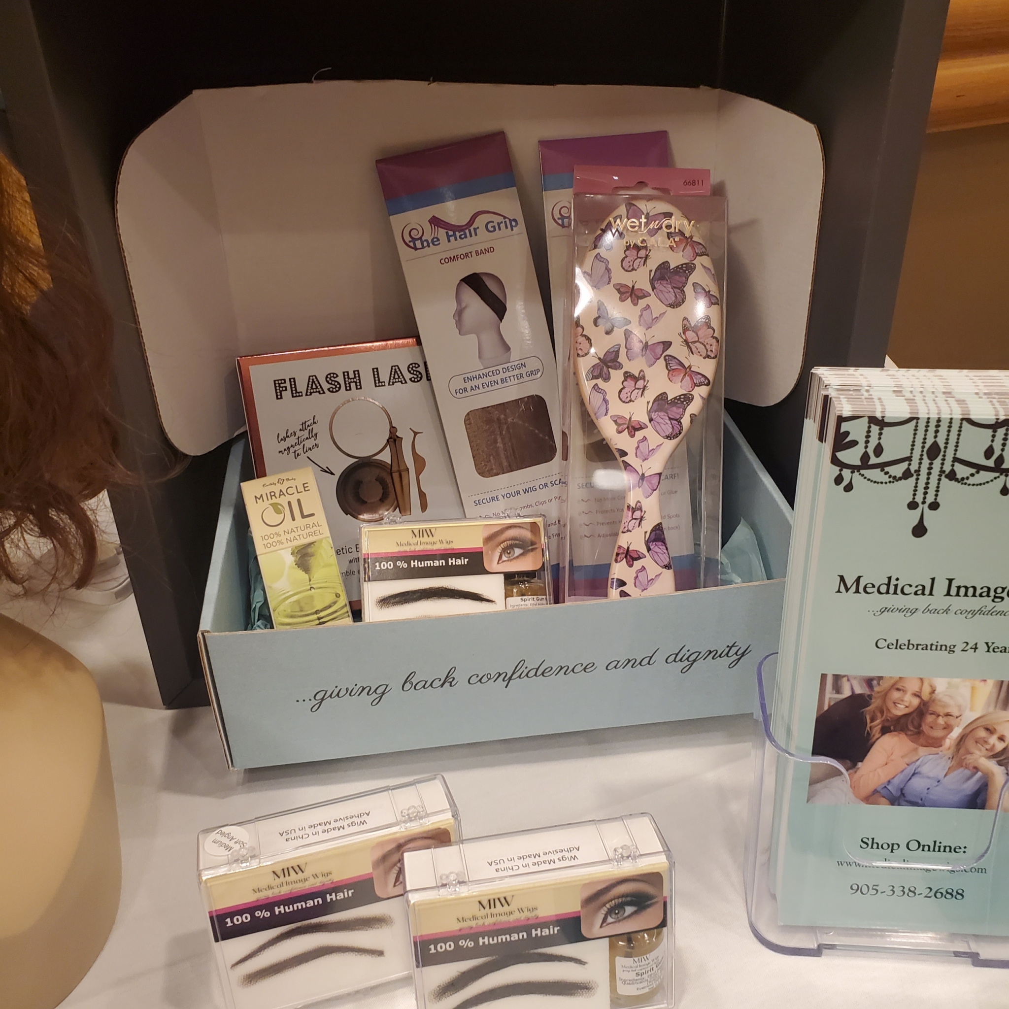 Pretty Wigs to You pour avoir offert trois paniers cadeaux contenant des livres sur l’alopécie, des accessoires, des produits de soins pour perruques et une superbe perruque Jon Renau!